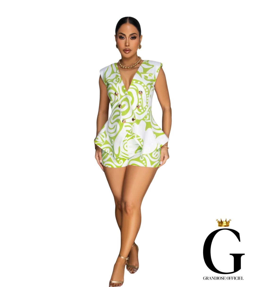 Le haut sans manches à col en V apporte une touche féminine, tandis que le short coordonné crée un style cohérent et dynamique. Idéal pour les vacances, les sorties ou le quotidien, cet ensemble est parfait pour un look frais, mode et estival.